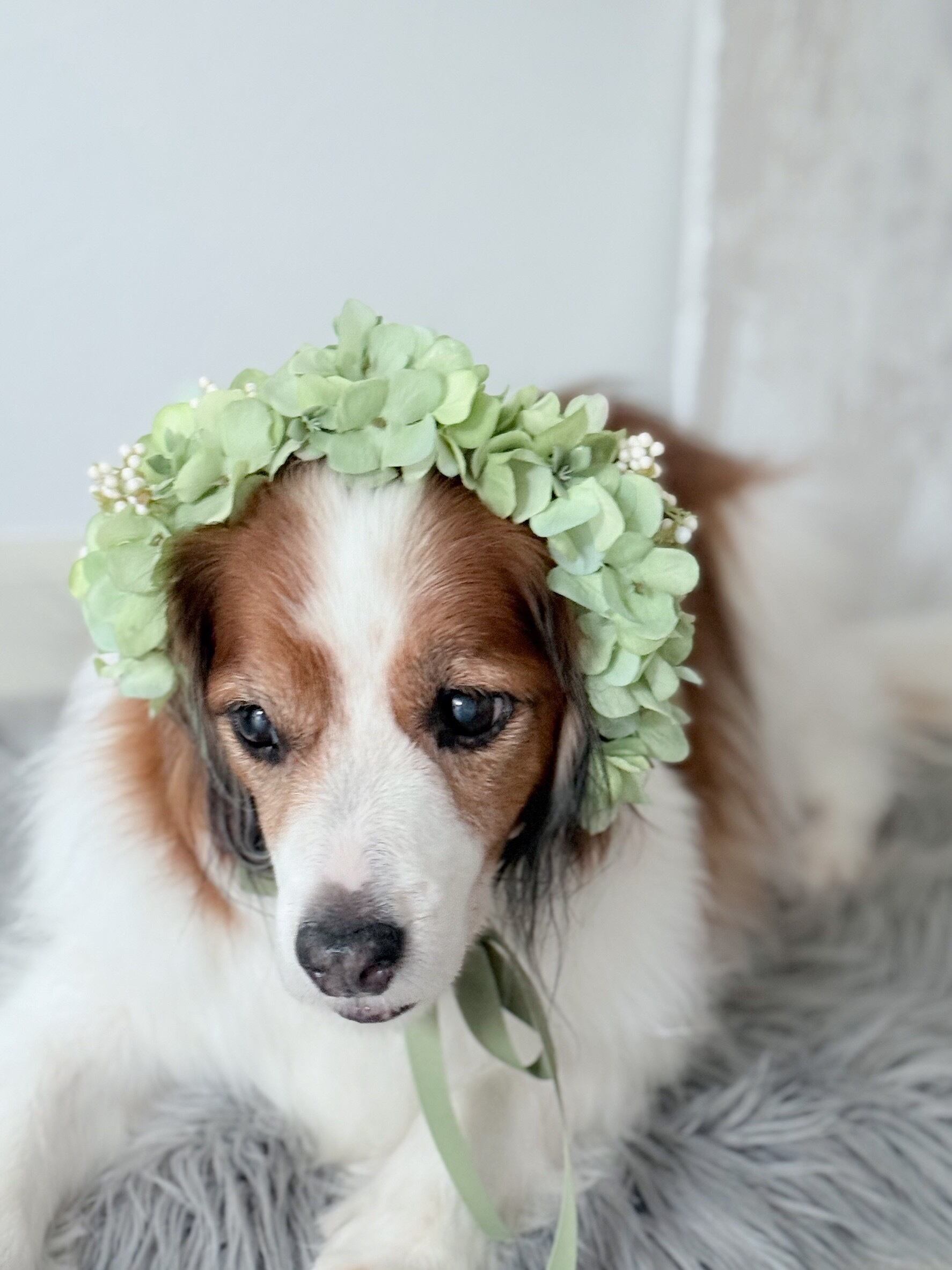 New 紫陽花(造花)アーティフィシャルフラワー フローリストが本気で作っ た花冠 ペットのやさしい花冠 お誕生日やお供えにも ペット用アクセサリー 犬猫花冠 リングドッグ 記念日 フォト撮影会 ウェディングドッグ 誕生日 プリザーブドフラワー ドライフラワー 可愛い おしゃれ ナチュラル 優しい お供え