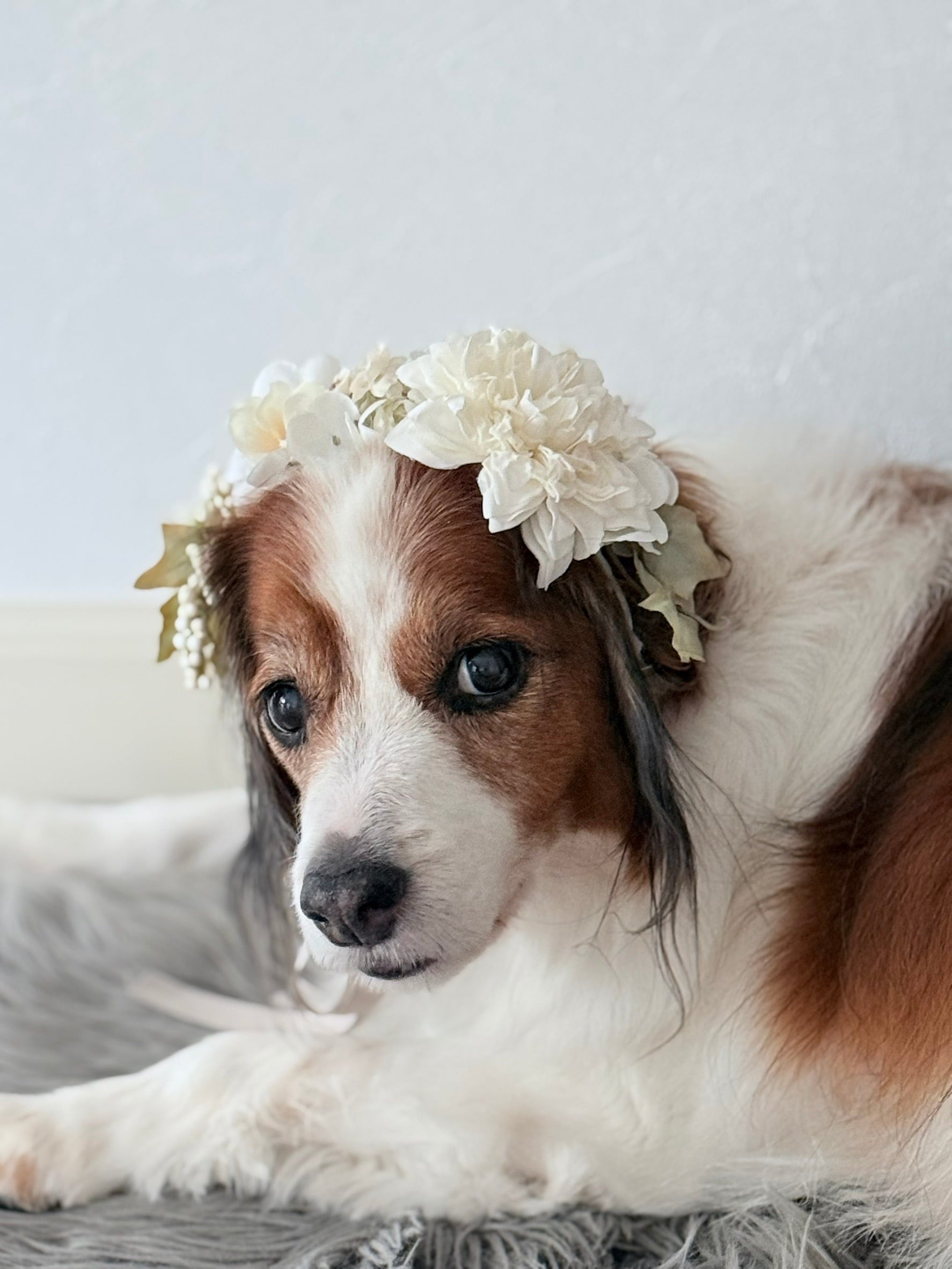 New ホワイトフラワー(造花)アーティフィシャルフラワー フローリストが本気で作っ た花冠 ペットのやさしい花冠 お誕生日やお供えにも ペット用アクセサリー 犬猫花冠 リングドッグ 記念日 フォト撮影会 ウェディングドッグ 誕生日 プリザーブドフラワー ドライフラワー 可愛い おしゃれ ナチュラル 優しい お供え