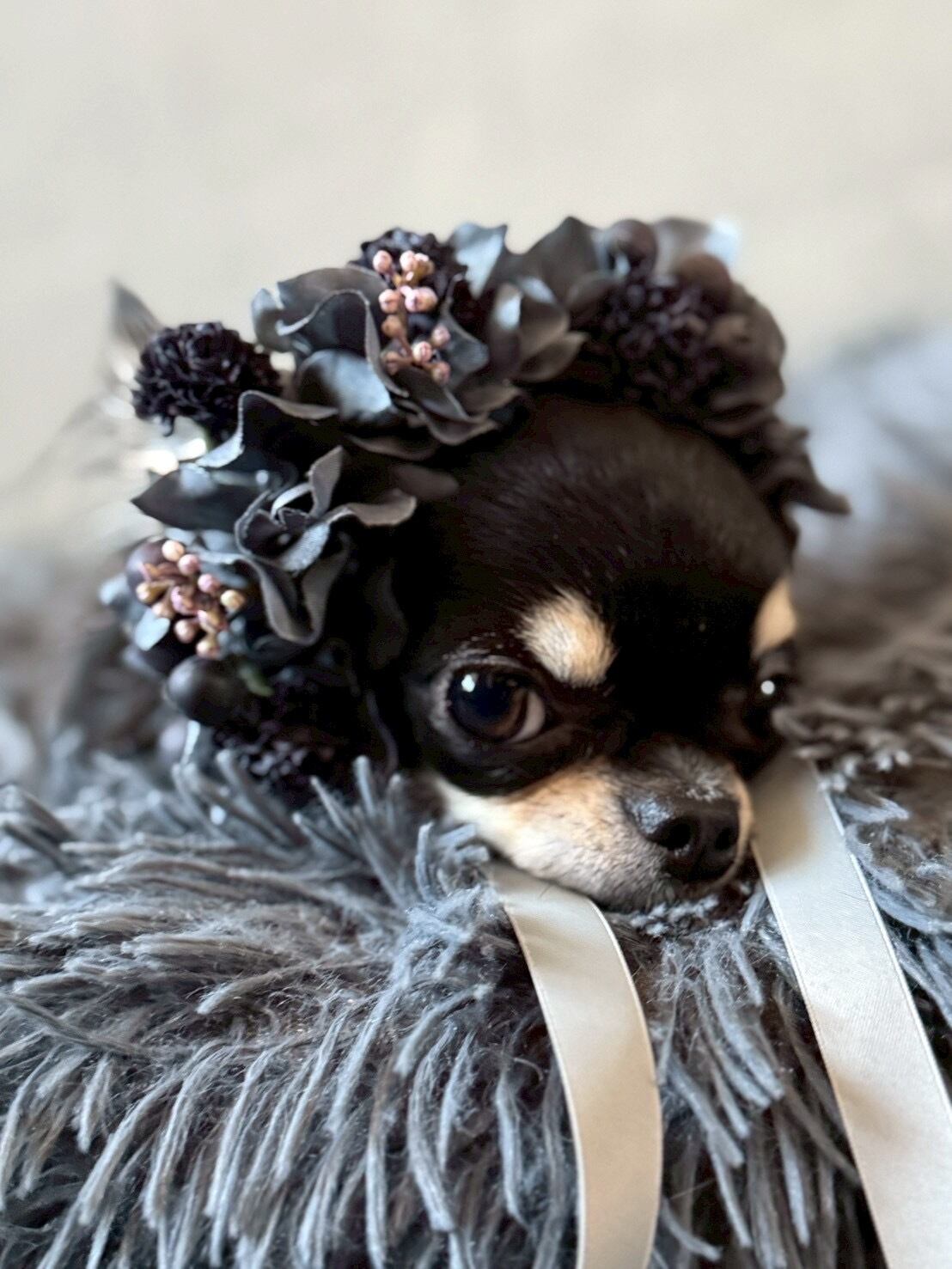□ お誕生日や記念撮影に、ペットの頭にそっとのせて