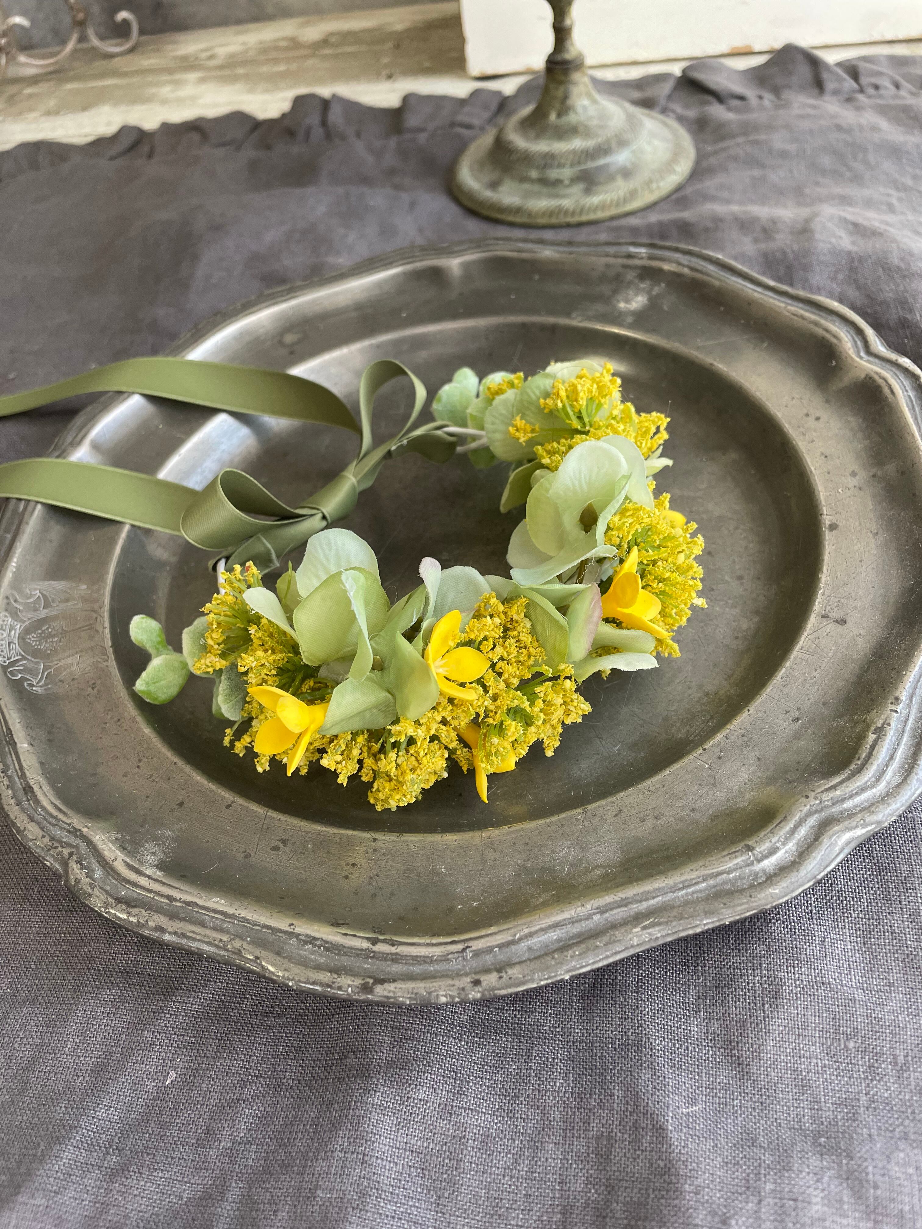 ミモザ(造花)の花冠になります。