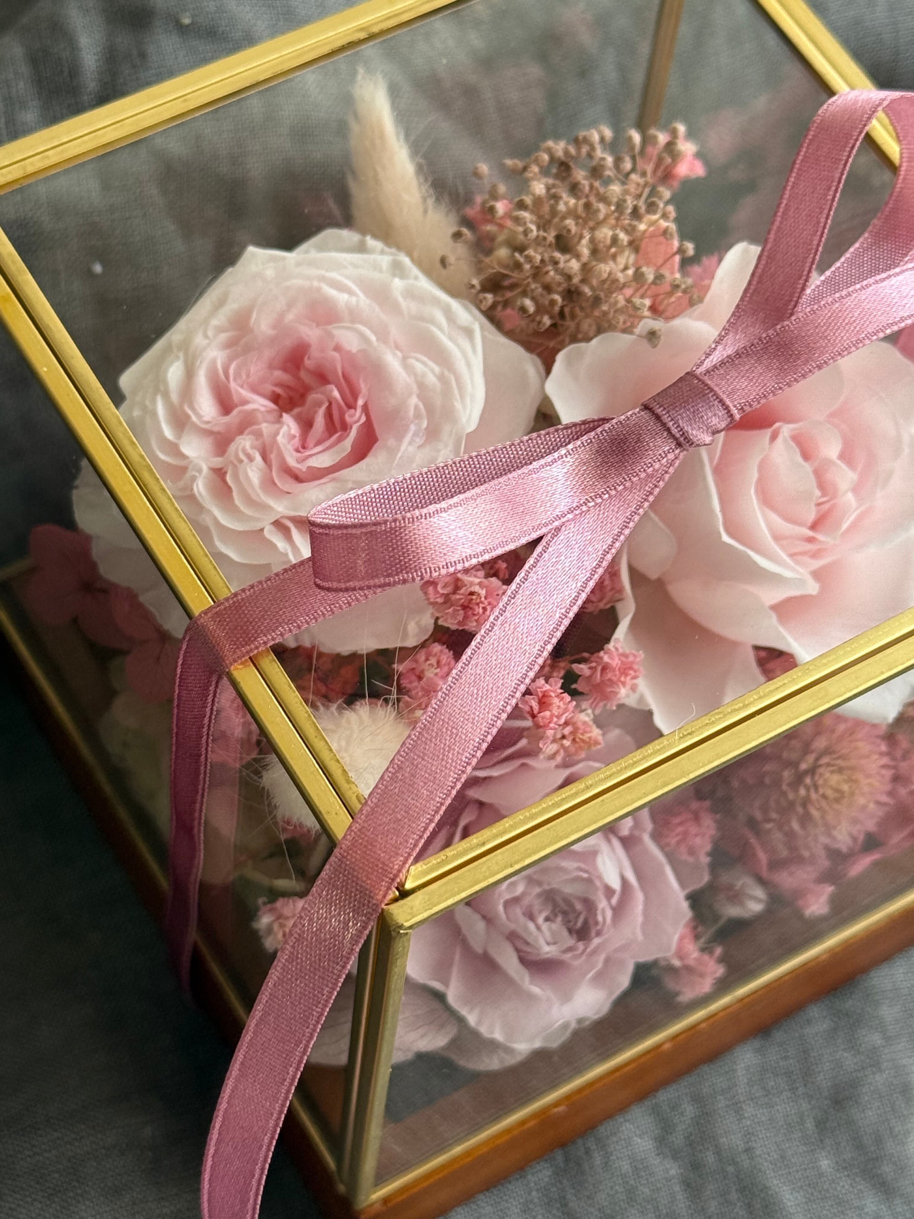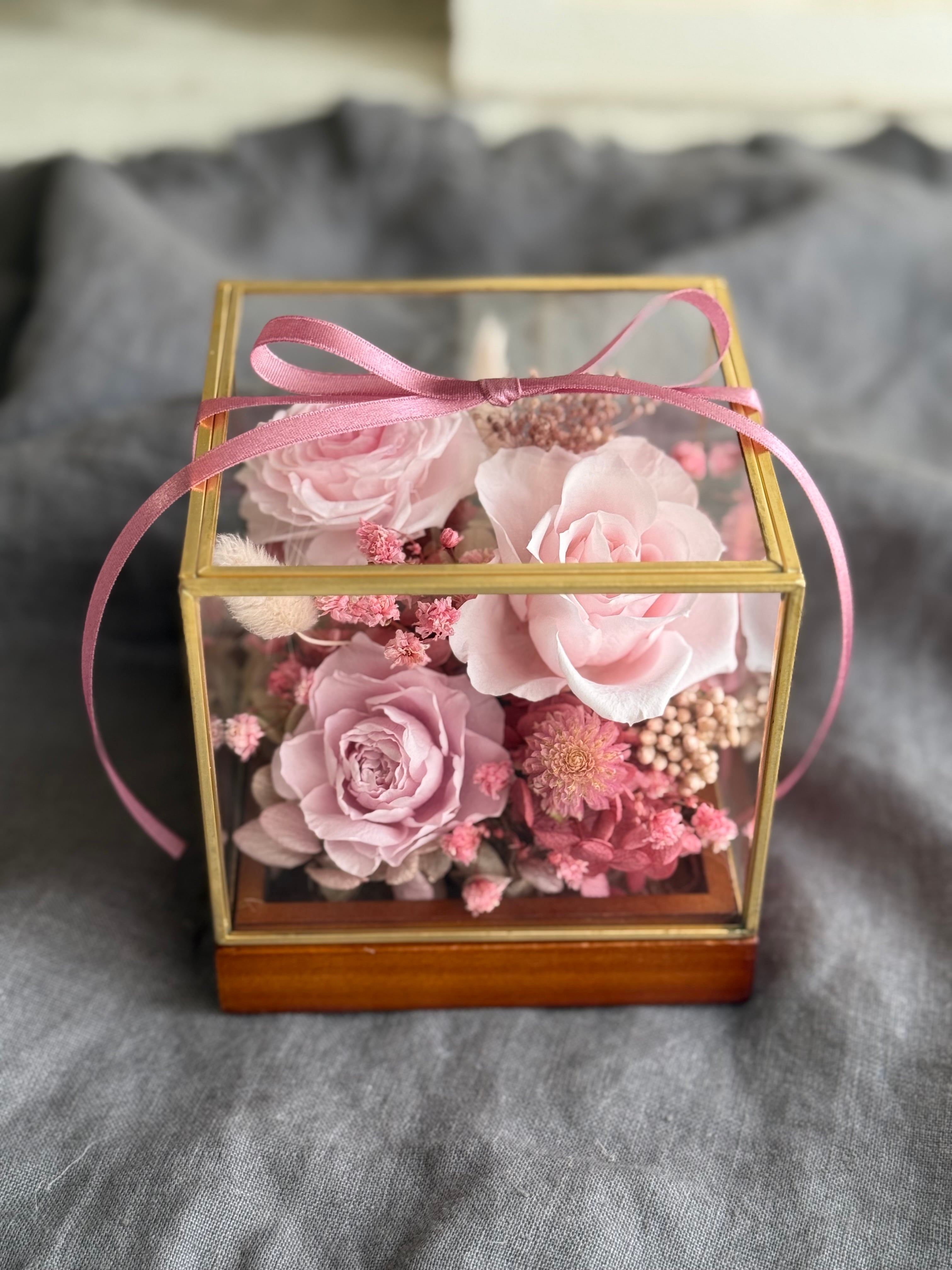 ガラスボックス ピンクローズ プリザーブドフラワー 贈り物 インテリア 枯れない花 可愛い 贈り物 誕生日 結婚祝い 新築祝い 開店祝い