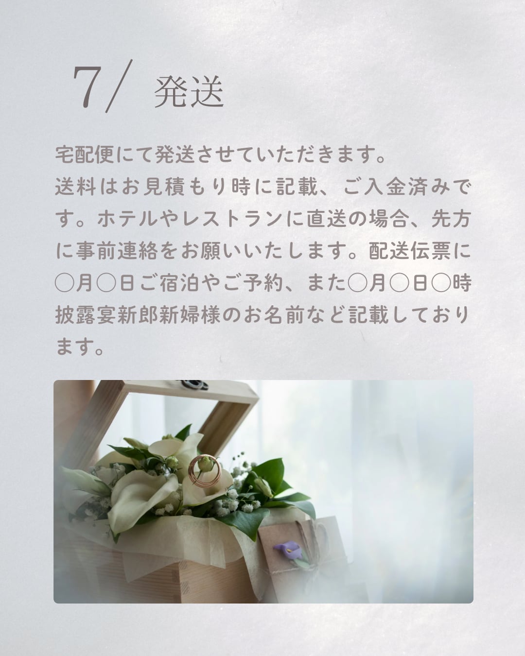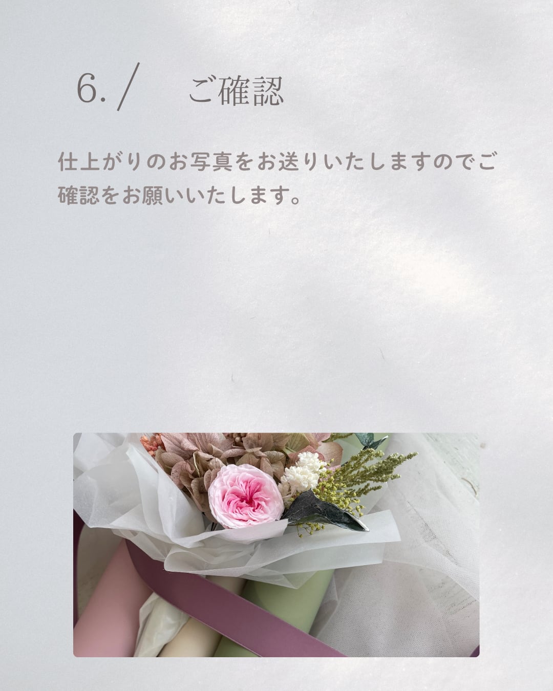 お急ぎの場合を除き、制作後はお写真をお送りいたします。決定後は変更できませんのでこの時点でご確認ください。